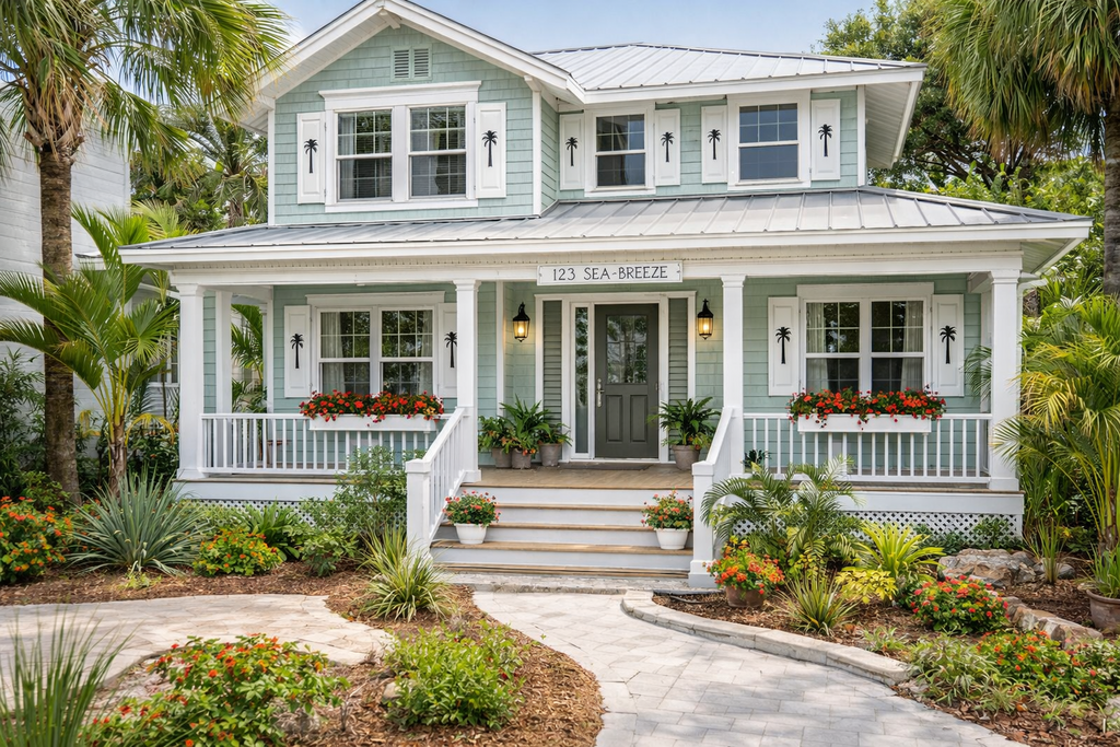 Florida architecture lives outdoors. Sunlight, color, texture, and first impressions matter more here than almost anywhere else. FloFancy designs with coastal climate, neighborhood character, and lifestyle in mind — not generic trends.